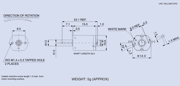 Typical Applications Audio and Visual Equioments:MD Player/Car CD Player/Camcorder Precision Instruments: Camera Toys and Models: Motorized Toy/Motorized Plastic Model/Radio Control Model |